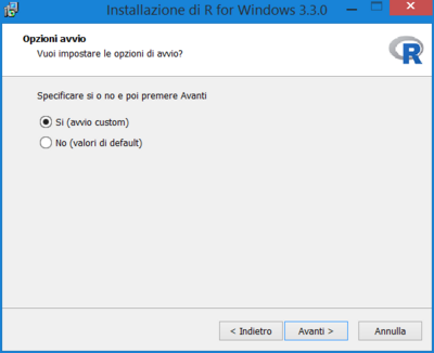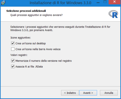Una volta scaricato il file, lo si esegue e si seguono le istruzioni a schermo per completare l'installazione di R.